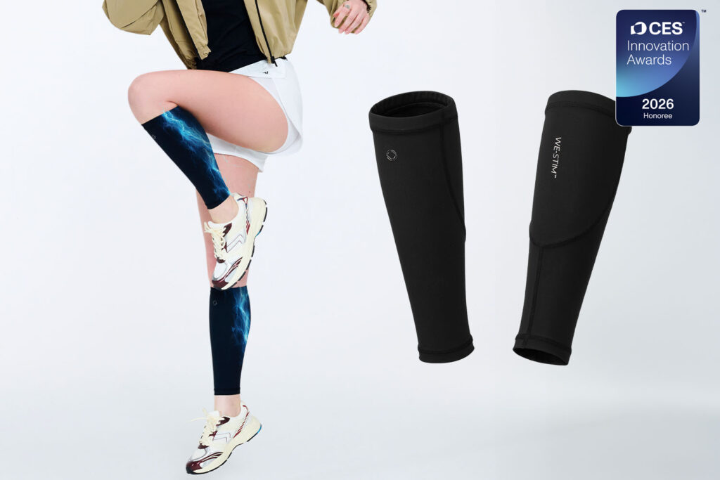 이번 CES 2026 패션테크 부문 혁신상 수상작인 WE-STIM™ CalfSleeve